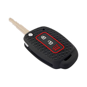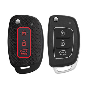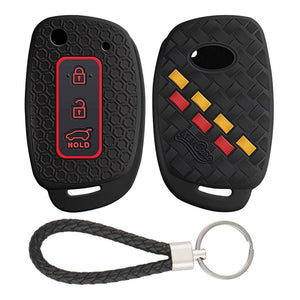 Hyundai 3 button flip key silicone key cover with keyring - Black