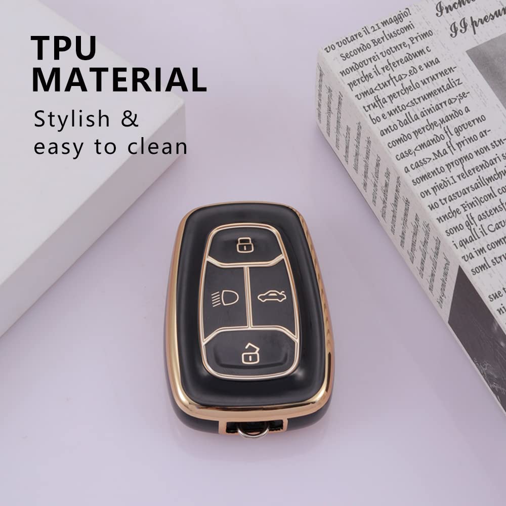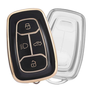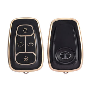 KEYKART® Clear Tpu & Golden Tpu key cover for Nexon, Altroz, Harrier, Tigor, Safari, Punch 4 button smart key(C)