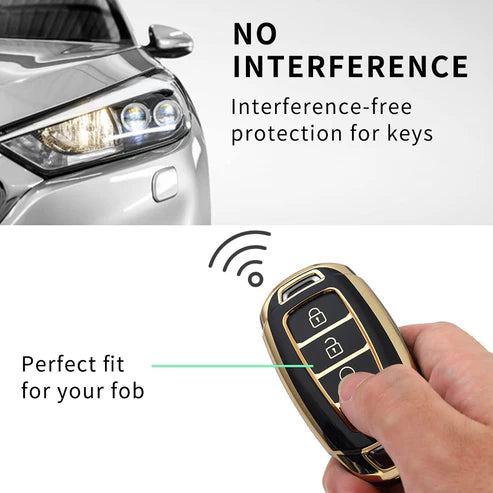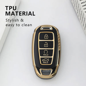 Hyundai 4 Button TPU Car Key Cover - Golden Black